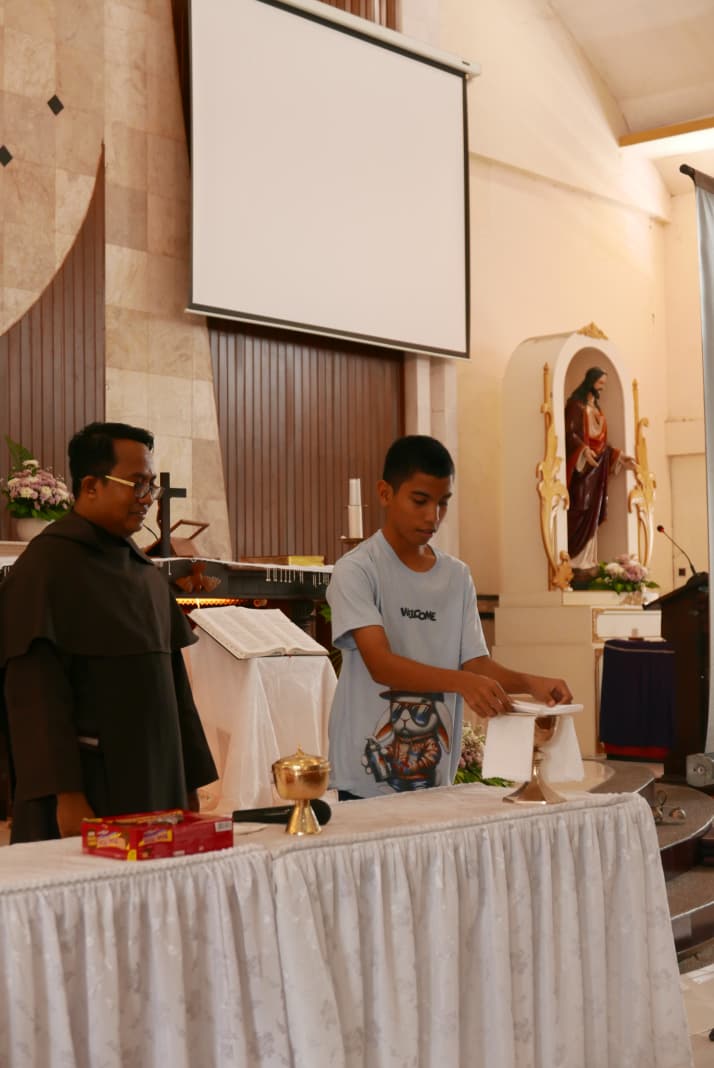 • Sudah menerima Sakramen Komuni Pertama; Agar dapat memahami dan menghormati liturgi Ekaristi