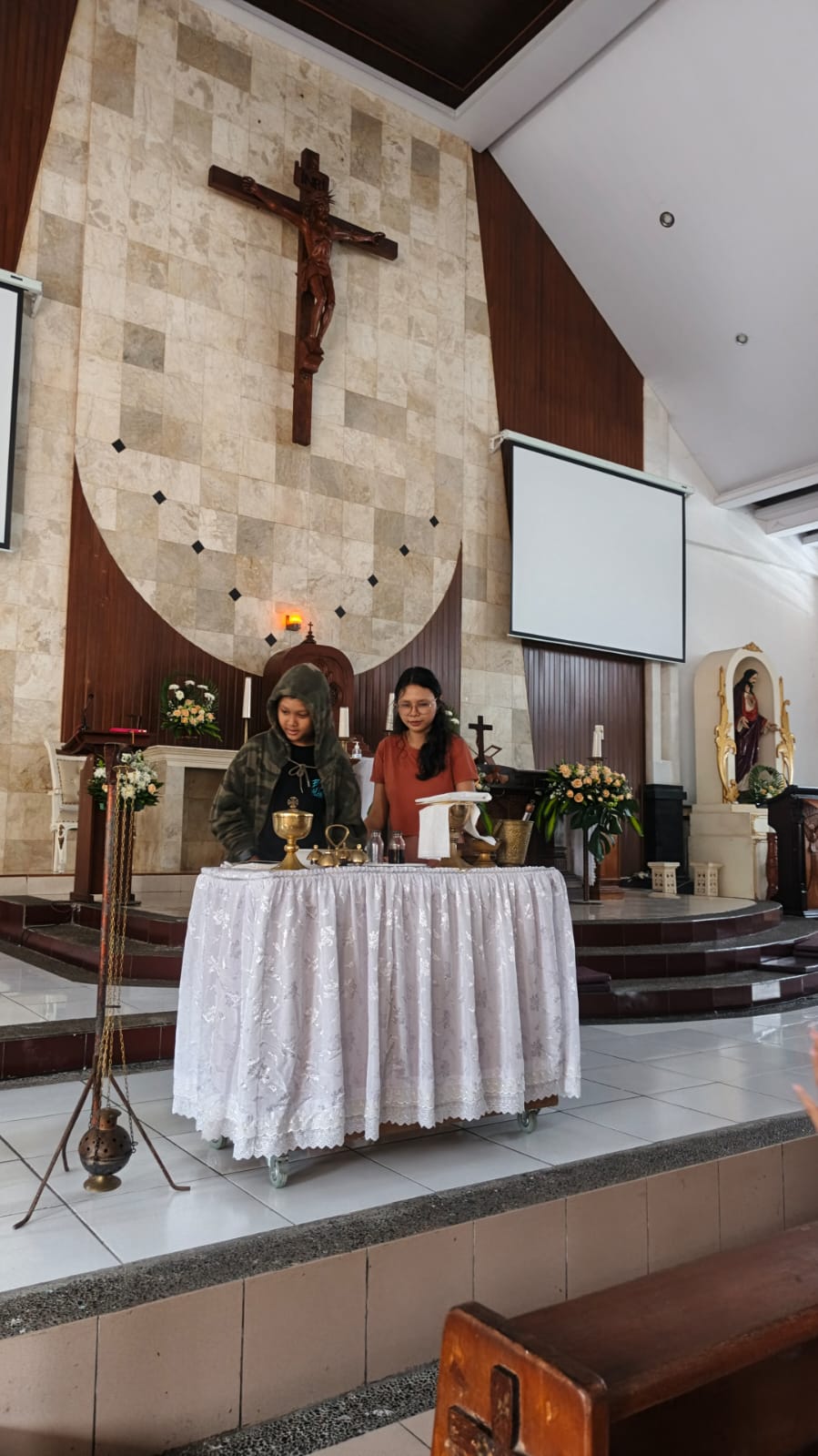 • Membantu imam menyiapkan altar (lilin, buku misa, anggur, dll)